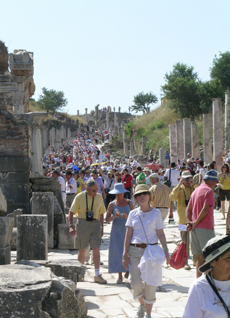 I am so thankful that Sidar took us to Ephesus so early. We explored Upper Ephesus and Curetes Way with almost nobody else in sight. Then, after we'd been there for about an hour and a half, the crowds started appearing. Before we knew it, Curetes Way looked like Main Street Disneyland.